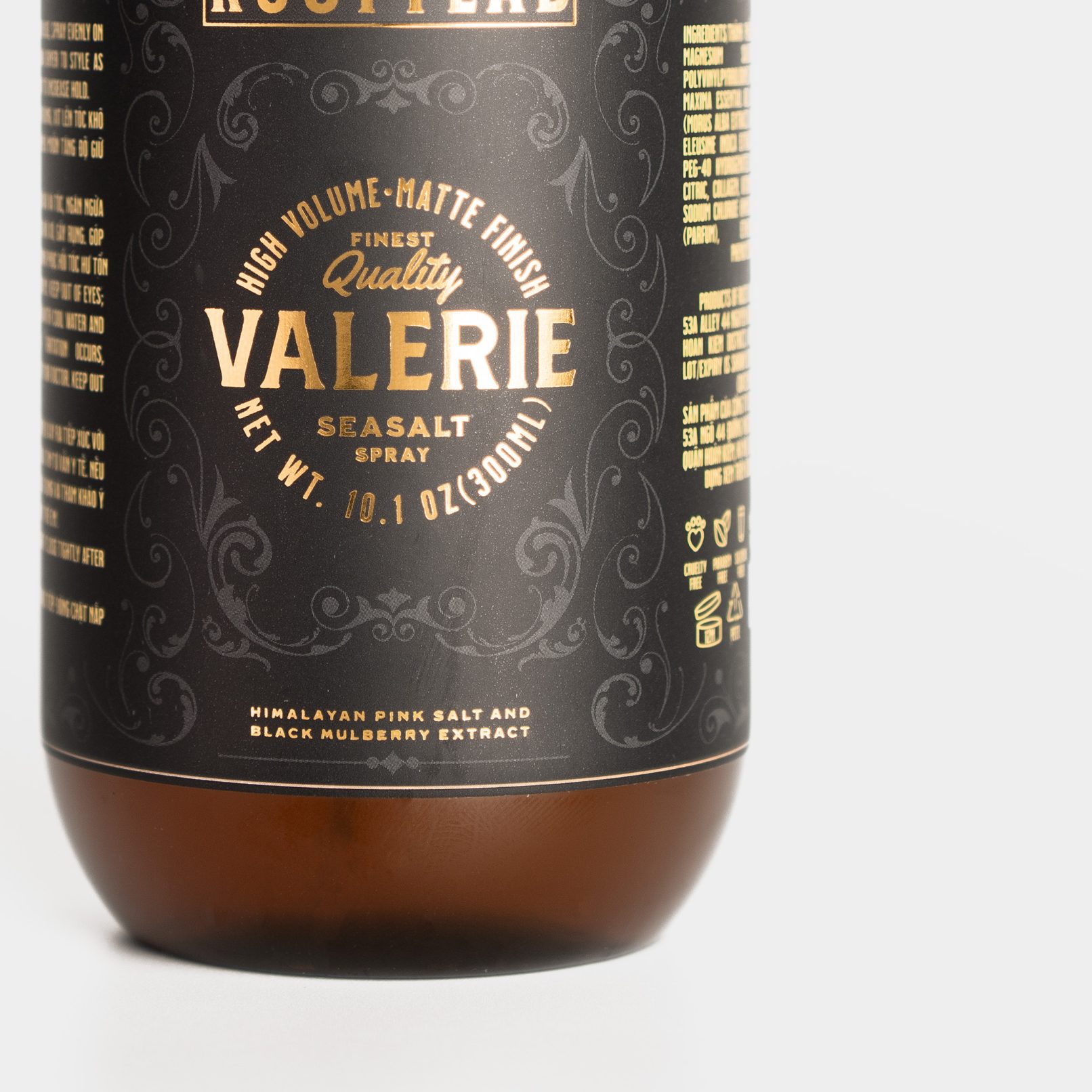 Không chỉ là một sản phẩm xịt giữ nếp đơn thuần, Valerie đã được sáng tạo ra với mục tiêu cải thiện cấu trúc và sức khỏe của mái tóc người sử dụng thông qua sự kết hợp mạnh mẽ của muối hồng Himalaya, chiết xuất dâu tằm đen, tinh dầu bưởi, Collagen và vitamin E. Những thành phần dinh dưỡng này bổ trợ cho nhau để tăng cường độ bền, độ đàn hồi và khả năng giữ ẩm cho mái tóc. Muối hồng himalaya sẽ giúp hấp thụ dầu thừa, ngăn ngừa rụng tóc, giúp tóc chắc khoẻ hơn. Tinh dầu bưởi và chiết xuất dâu tằm đen sẽ cung cấp dưỡng chất, giúp tóc dày hơn, kích thích mọc tóc, thúc đẩy quá trình mọc tóc, giúp nang tóc chắc khỏe, ngoài ra còn tăng sự tổng hợp melanin giúp tăng cường màu tóc tự nhiên của người sử dụng.